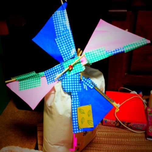 うりちゃんの作品。 太さの違う筒を重ねて、シュッシュとできます。 先の洗濯バサミに技がきいてます。うりちゃんのアイデア。家には空気入れがなくて、 いつもスーパーに設置されている機械でいれているのに、 どこでこのタイプを覚えたんだろう。